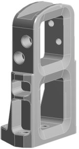 There is no need to simplify the fixture model geometry, as it is not overly complex and the 3D model is used as is for the analysis. Bolted connections to the armature are presented by imprints of bolts to the fixture and thus are not included in the model. Used for simulations geometry model is shown in Figure 3 b).