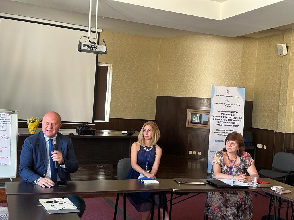 „Промяната в училищното образование започва от подготовката на бъдещите учители – подчертава министърът на образованието и науката проф. Галин Цоков при откриването на Националната конференция за проектно базираното обучение в българското образование в Бургас. Във форума, организиран по Националната програма „Квалификация на педагогическите специалисти“, участват над 100 преподаватели от университети и училища от цялата страна. Домакин е Департаментът за квалификация и професионално развитие на педагогическите специалисти към Университета „Проф. д-р Асен Златаров“ в Бургас.