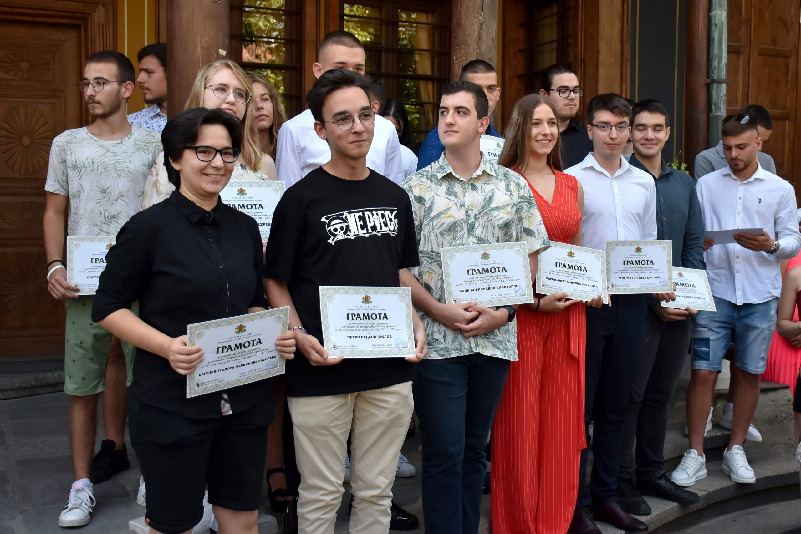 „През тази година са обучени 201 ученици, от които 192 са се дипломирали и са получили свидетелство за валидиране на професионална квалификация в областта на приложното програмиране“, съобщава още проф. Цоков. Отличниците от тях са 50. Заедно с техните обучители те получават грамоти от просветния министър.