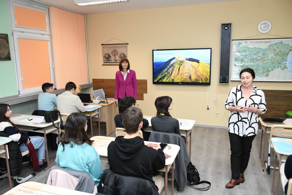 Осигурен е нов интерактивен дисплей, който ще даде възможност на учениците да визуализират и изследват исторически събития и географски места чрез динамични и интерактивни презентации и симулации, обясни директорът на гимназията Веселина Иванова.