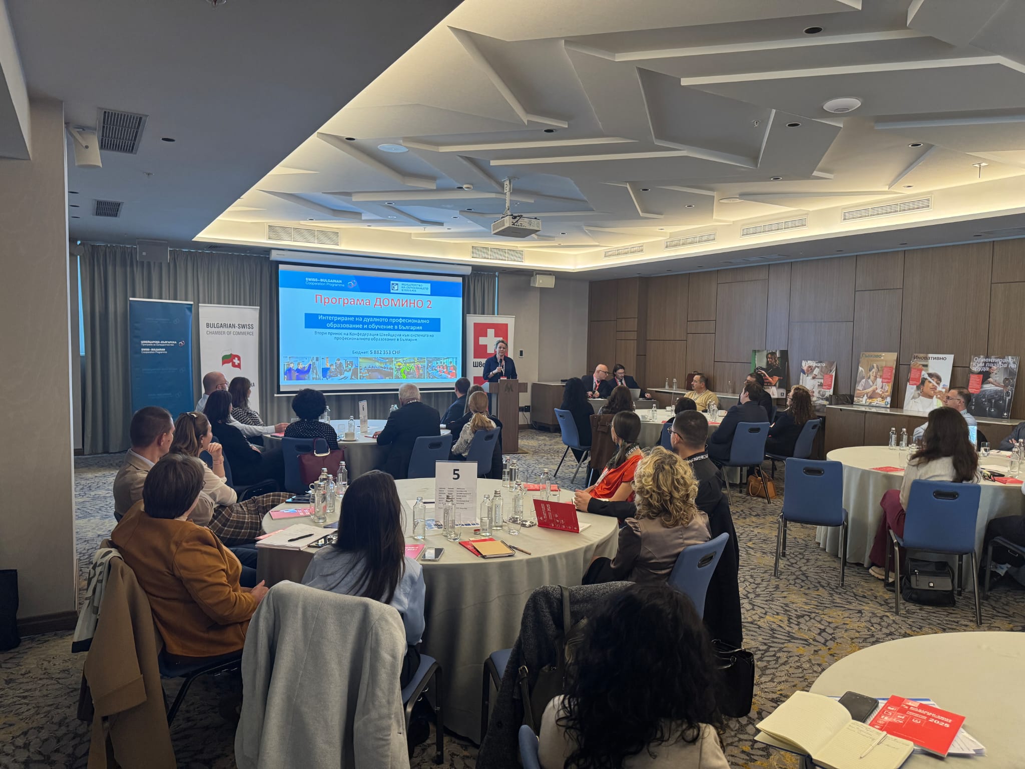 „ДОМИНО 2“ се изпълнява в рамките на Швейцарско-българската програма за сътрудничество, като три швейцарски организации ще помогнат за въвеждането на нови модели и добри практики в българската дуална система.