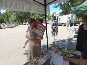 В парка „Заимов“ служителите на Столичната библиотека правят читателска карта и на бебе на 25 дни.