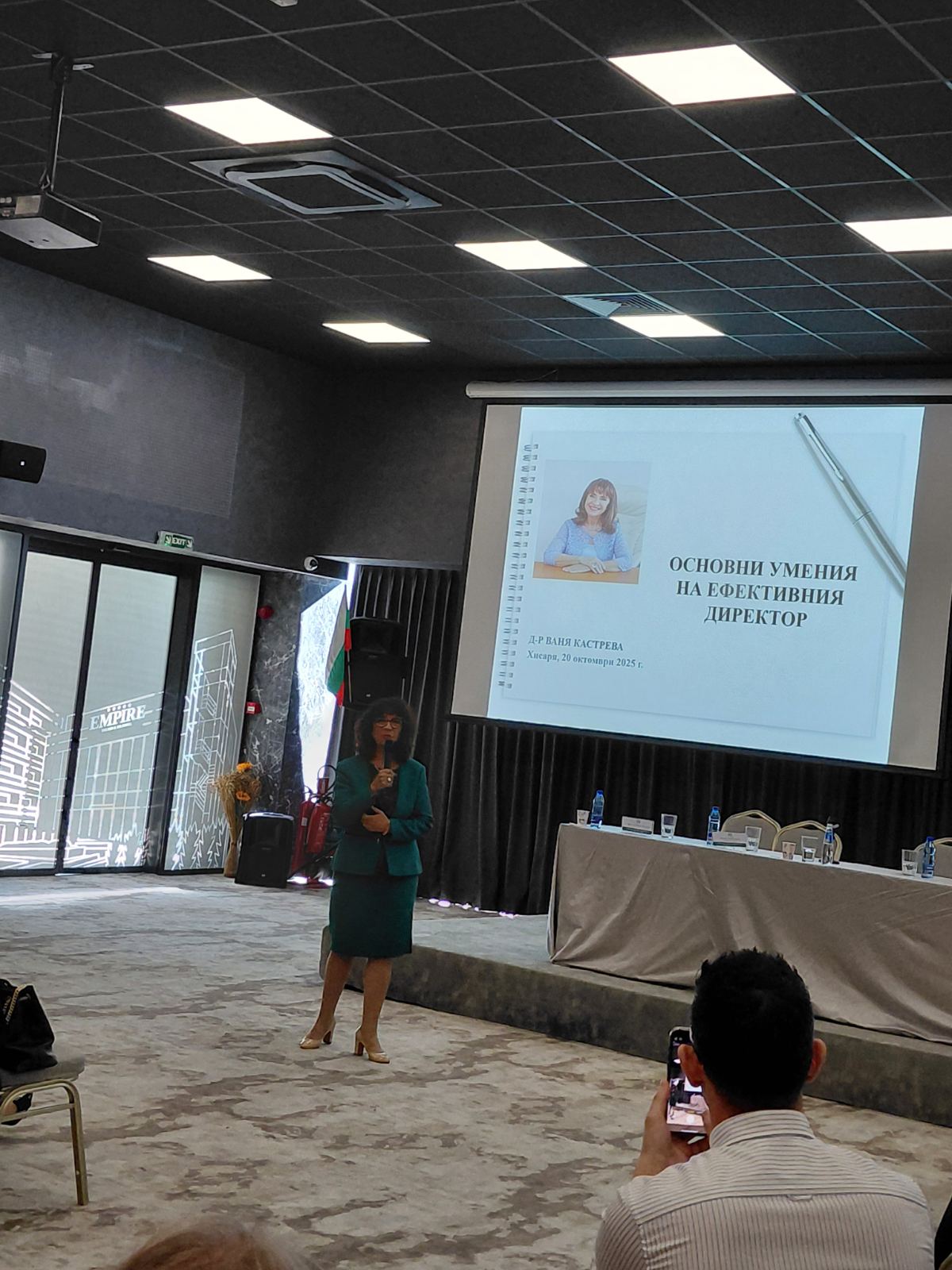 Пред над 230 директори от училища и детски градини от цялата страна д-р Кастрева представи темата „Основни умения на ефективния директор“.