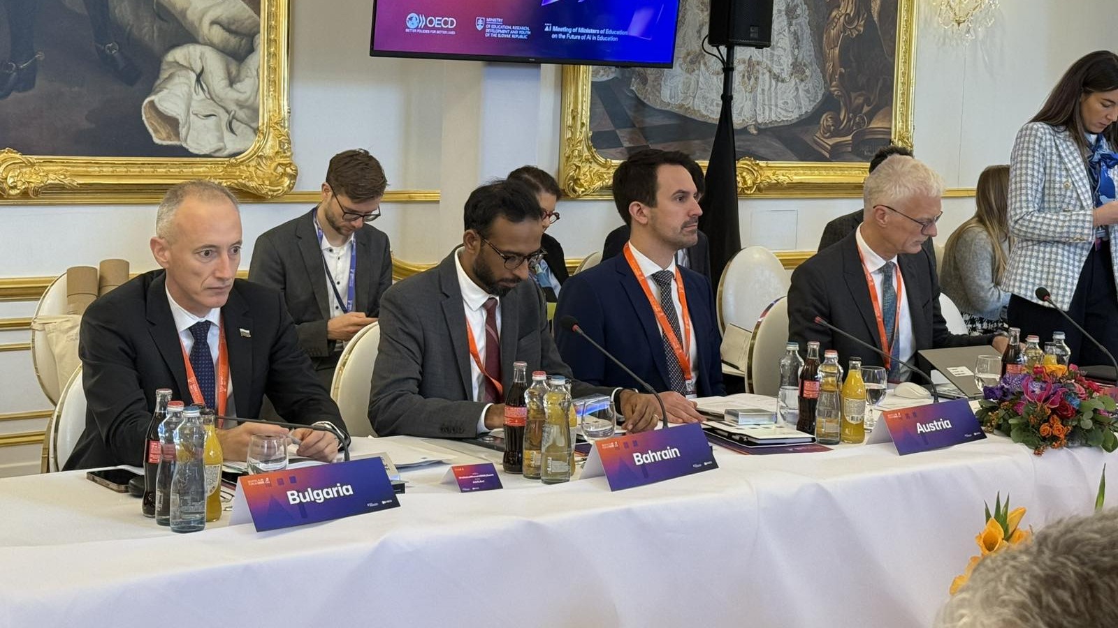 Министър Вълчев участва кръглата маса, посветена на бъдещите компетентности в епохата на изкуствения интелект. Той представи политиките на България в областта на дигиталната трансформация и интегрирането инструменти с изкуствен интелект в учебния процес и подкрепата за учителите.