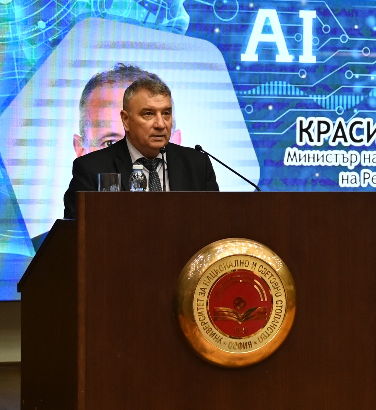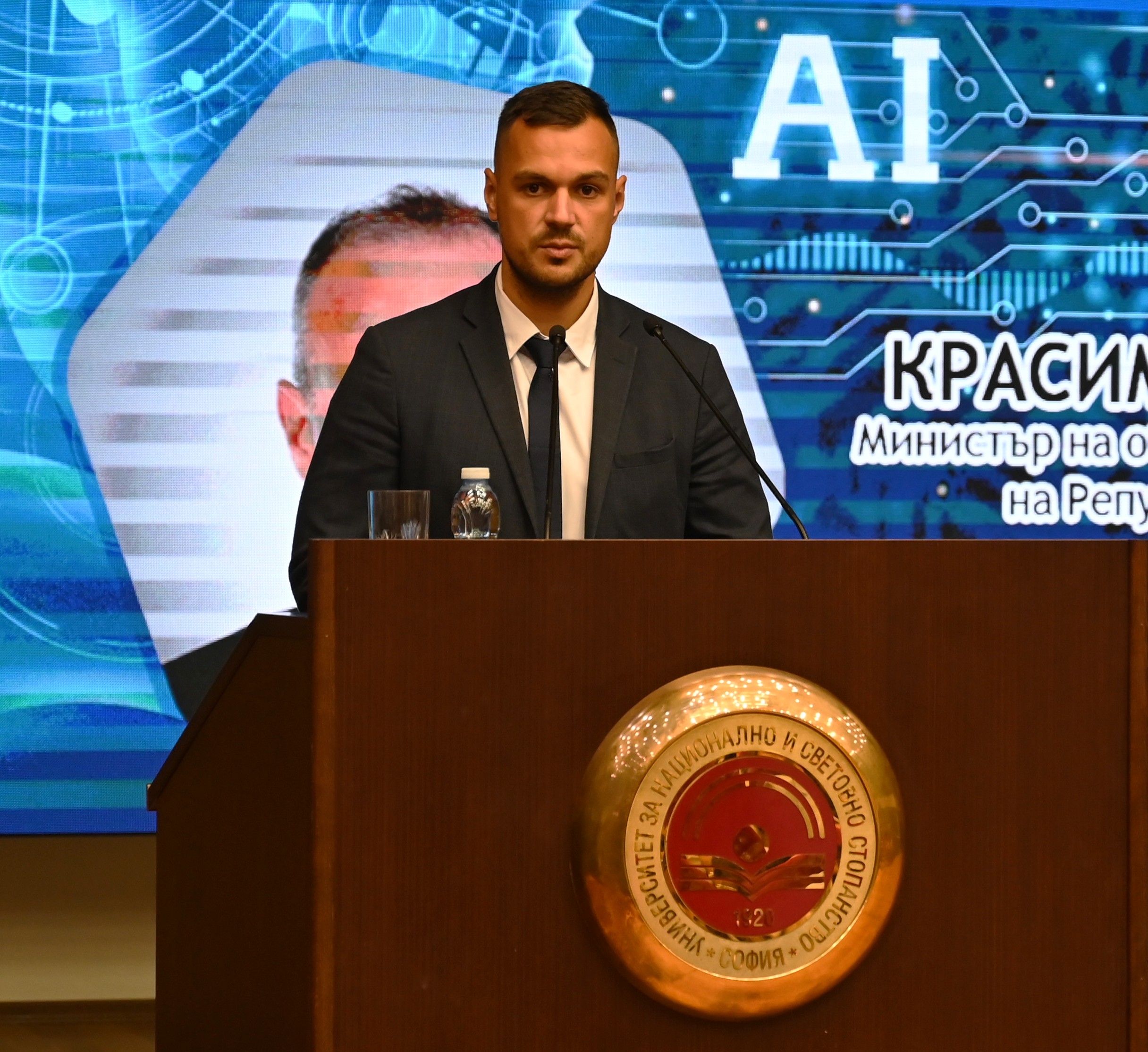 Просветният министър цитира изследвания, според които изкуственият интелект ще удвои брутния вътрешен продукт на света в следващите 15 години, но това нарастване на икономиката ще е неравномерно.