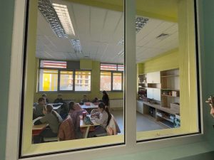 След като чуха училищния химн в изпълнение на вокална група „Магията на песента“, гостите разгледаха двата етажа, влязоха в часовете, пробваха новия асансьор и посетиха спортната зала, чието изграждане струва 1,8 млн. лева по програмата на МОН и ММС.
