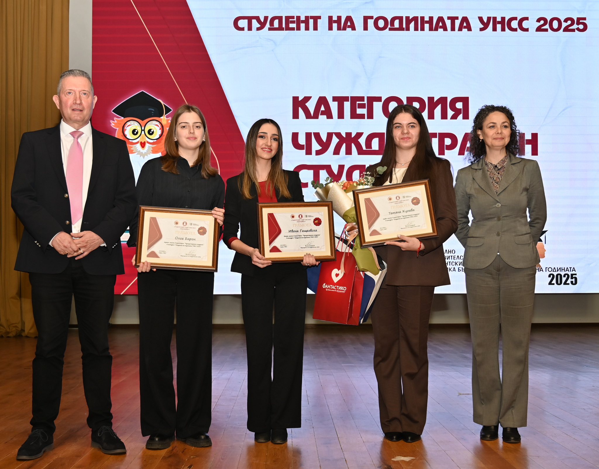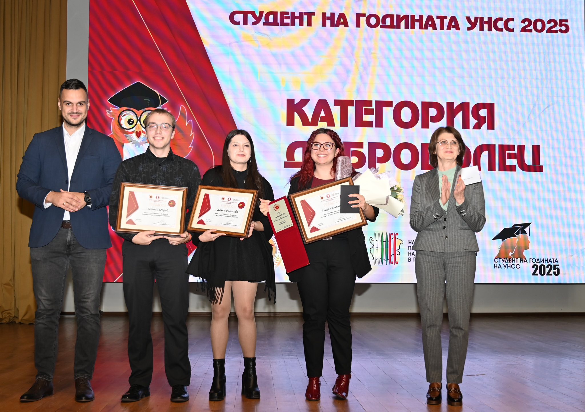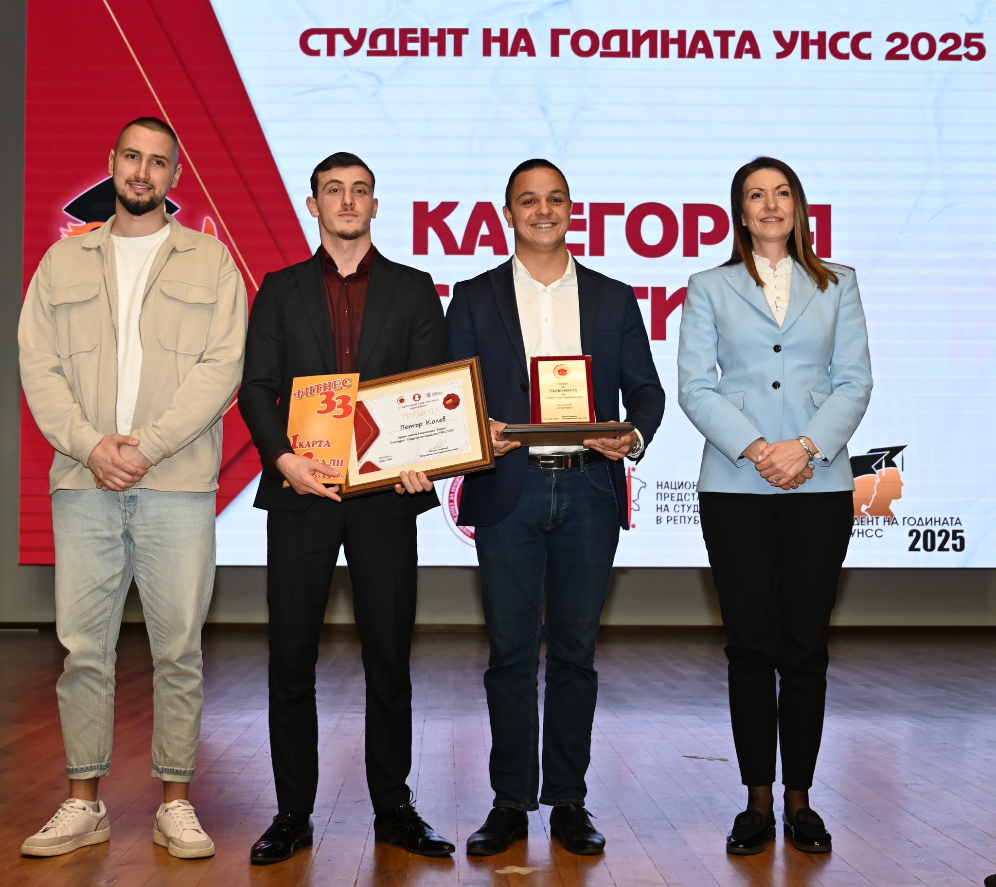 На церемонията бяха отличени и останалите победители в XXII издание на конкурса „Студент на годината на УНСС“, организиран от Студентския съвет под патронажа на ректора.