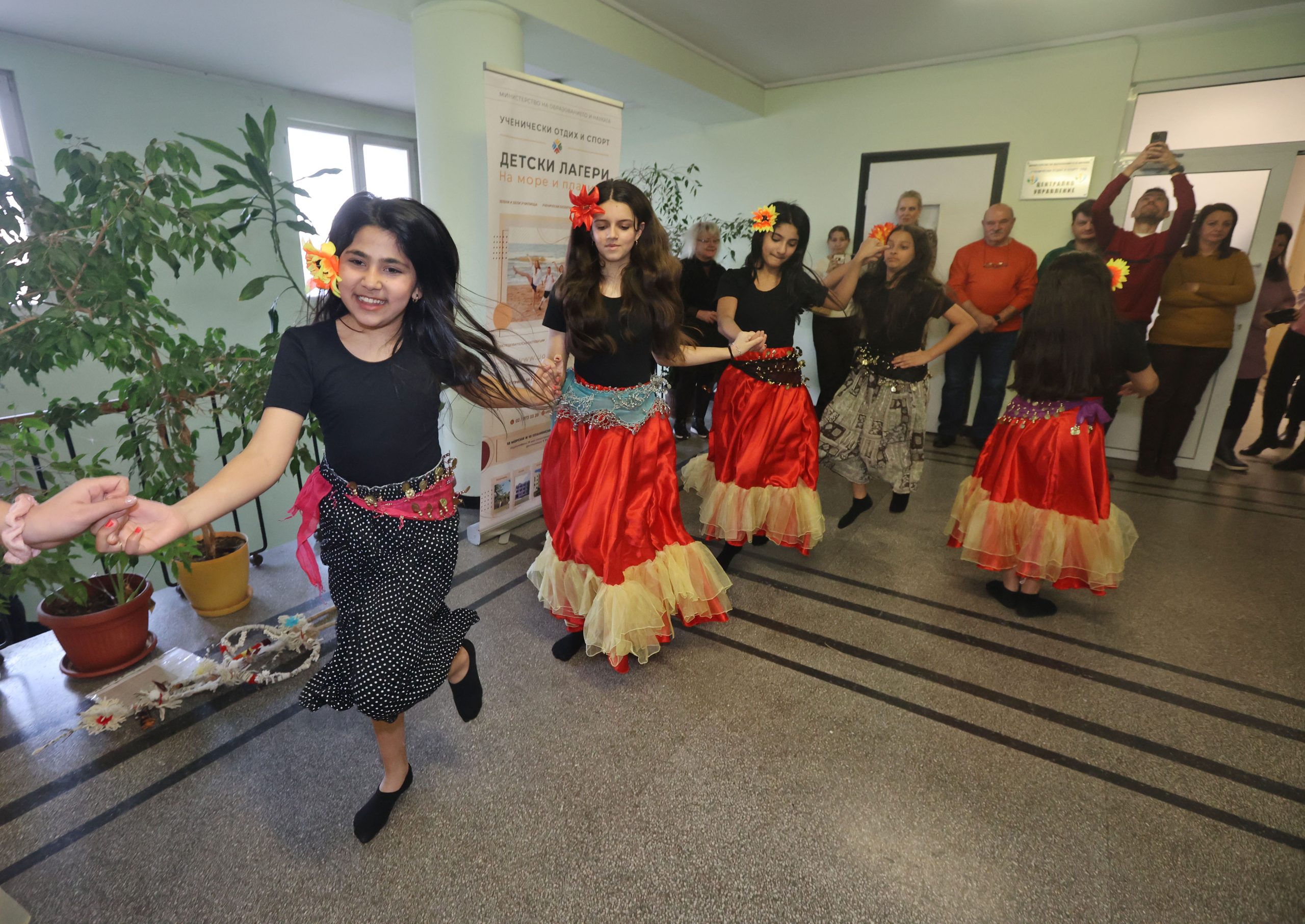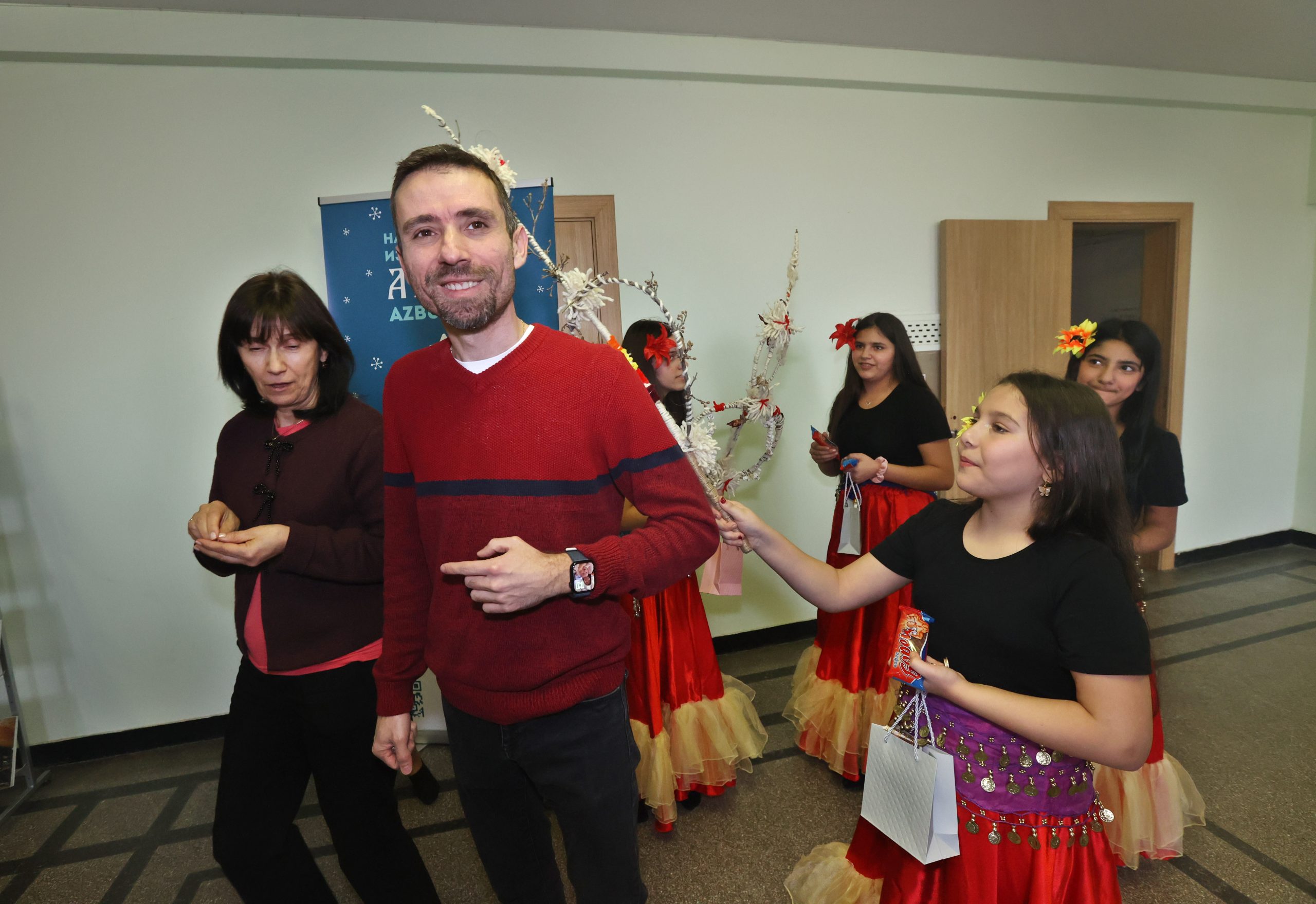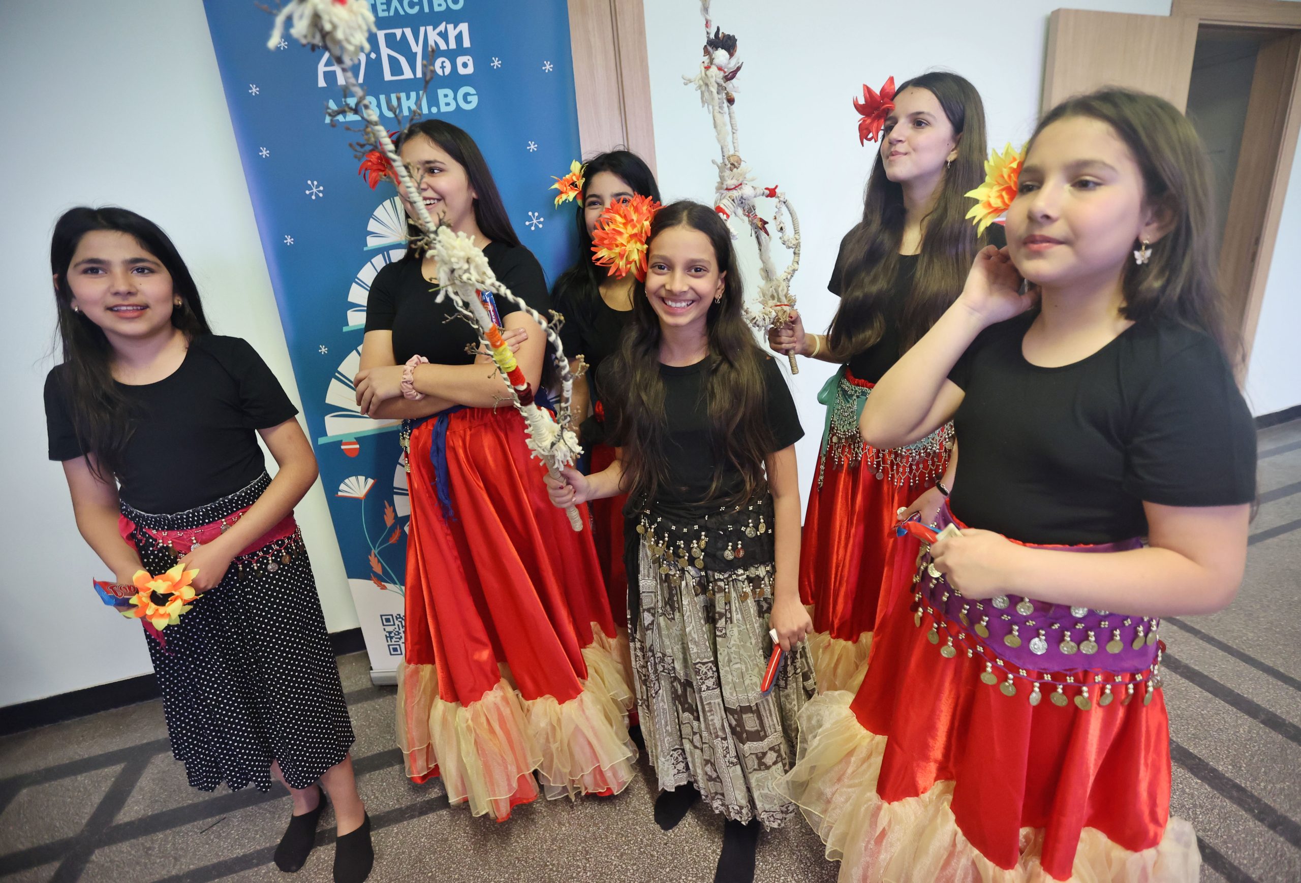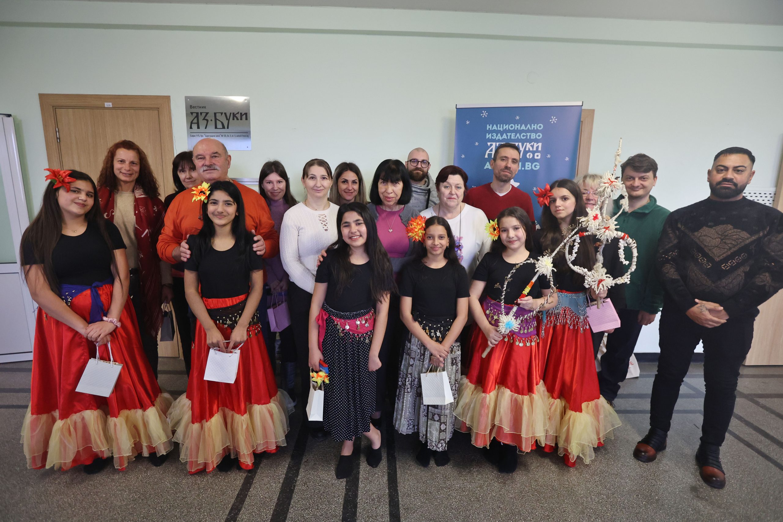 След това децата от ОУ „Христо Ботев“ в Мъглиж изпълниха няколко народни танца, разкривайки красотата на ромския и българския фолклор. Накрая сурвакаха екипа на „Аз-буки“ и пожелаха на всички здраве и благополучие през 2026 г.