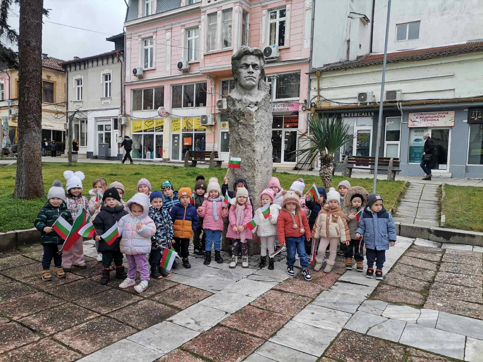 Малките ни възпитаници отбелязват годишнини от рождението или смъртта на велики българи като Христо Ботев, Васил Левски, както и годишнини от исторически събития и български празници – Освобождението на родния град от османско владичество, Трети март, Ден на будителите.