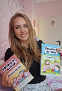 От шест години е начален учител и вече има цял випуск, който е обучавала от началото от I до IV клас. От часовете и споделеното време с тях се раждат и сюжетите на нейните книги. Става въпрос за поредицата „Училищни истории“, която включва четири книги – „Малки стъпки към големи промени“, „От грешка към поука“, „Щуро лято“ и „Незабравима зима“.