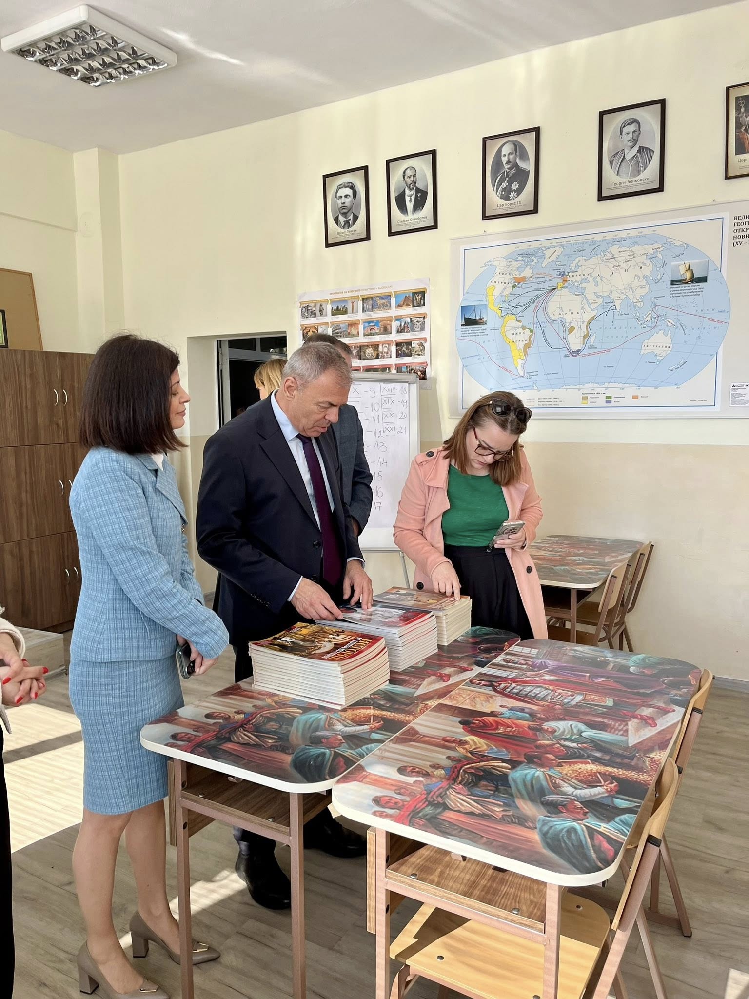 Сред официалните гости на посещението в гимназията бяха кметът на община Нова Загора Галя Захариева, д-р Кристиана Добрева-Станкова – началник на РУО – Сливен, Мария Петкова, началник на кабинета на министъра на образованието и науката, и представители на местната власт и образователните институции.