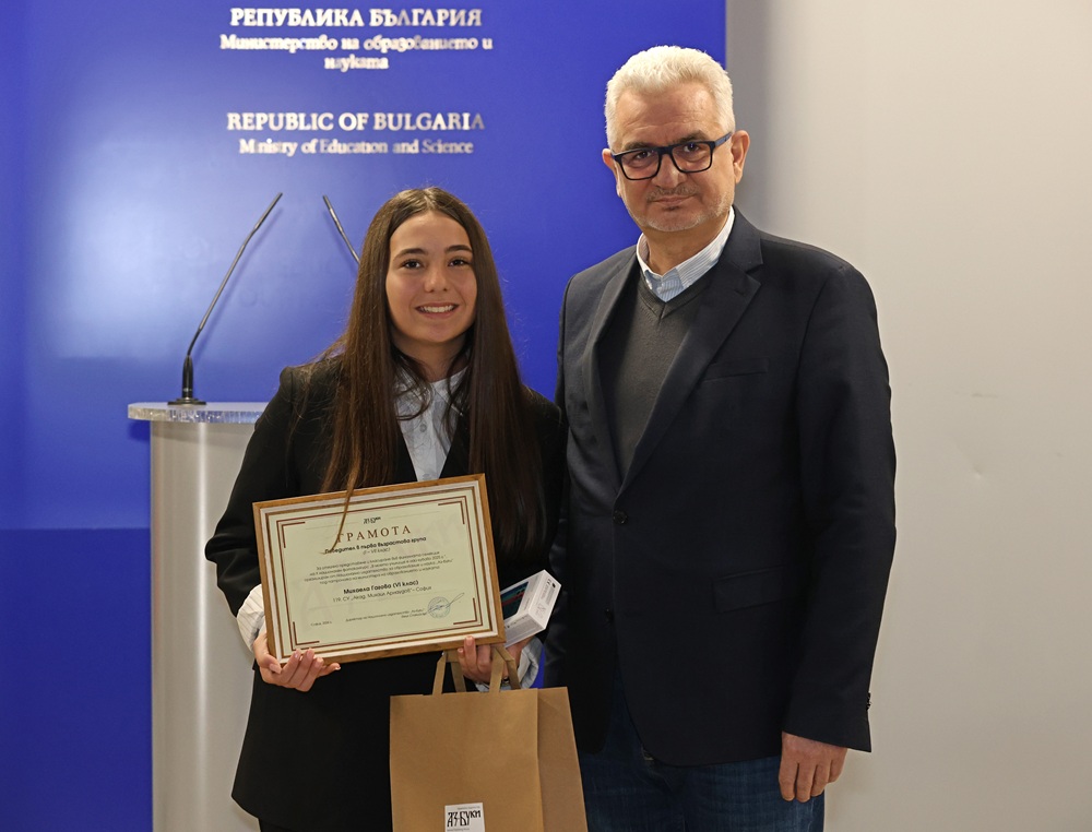 Победителката Михаела Гагова от 119. СУ „Акад. Михаил Арнаудов“ в София бе отличена със смартфон. Заелата второ място Карина Стоянова от бургаското ОУ „Любен Каравелов“ спечели екшън камера. А спечелилата трето място Никол Неделчева от ОУ „Любен Каравелов“ в Попово получи фотоапарат.