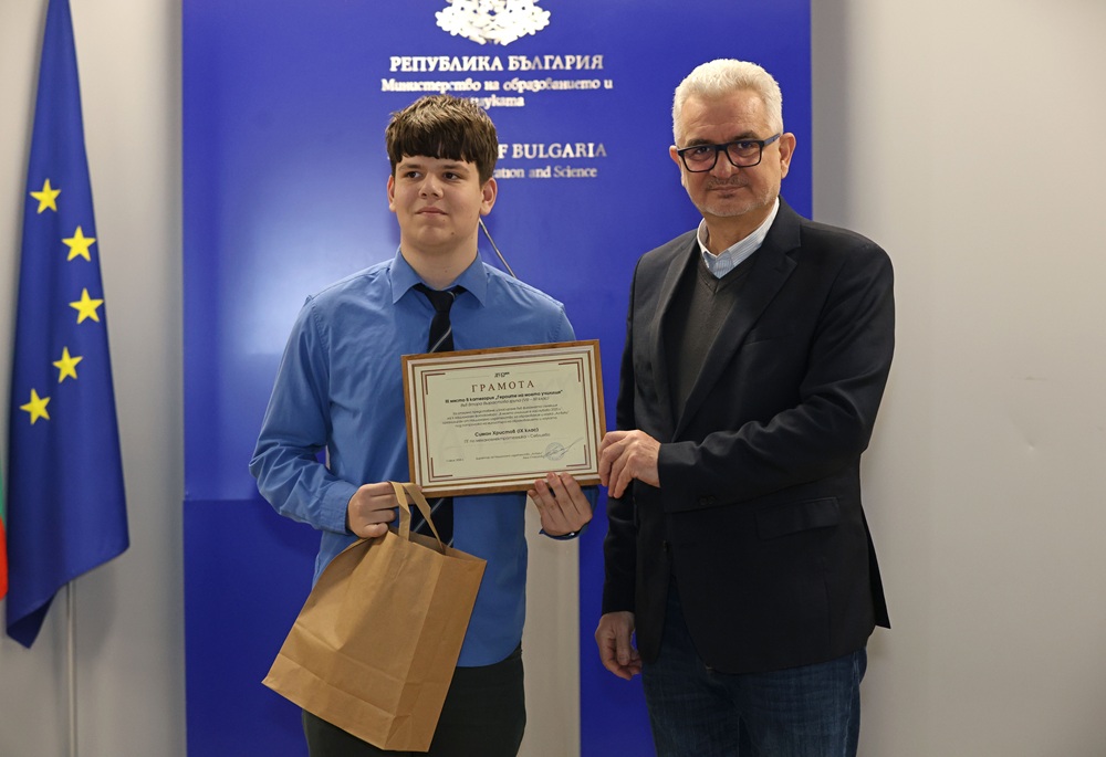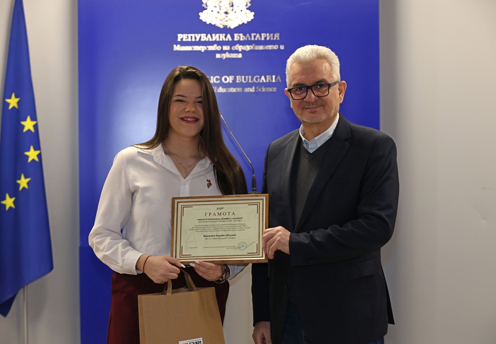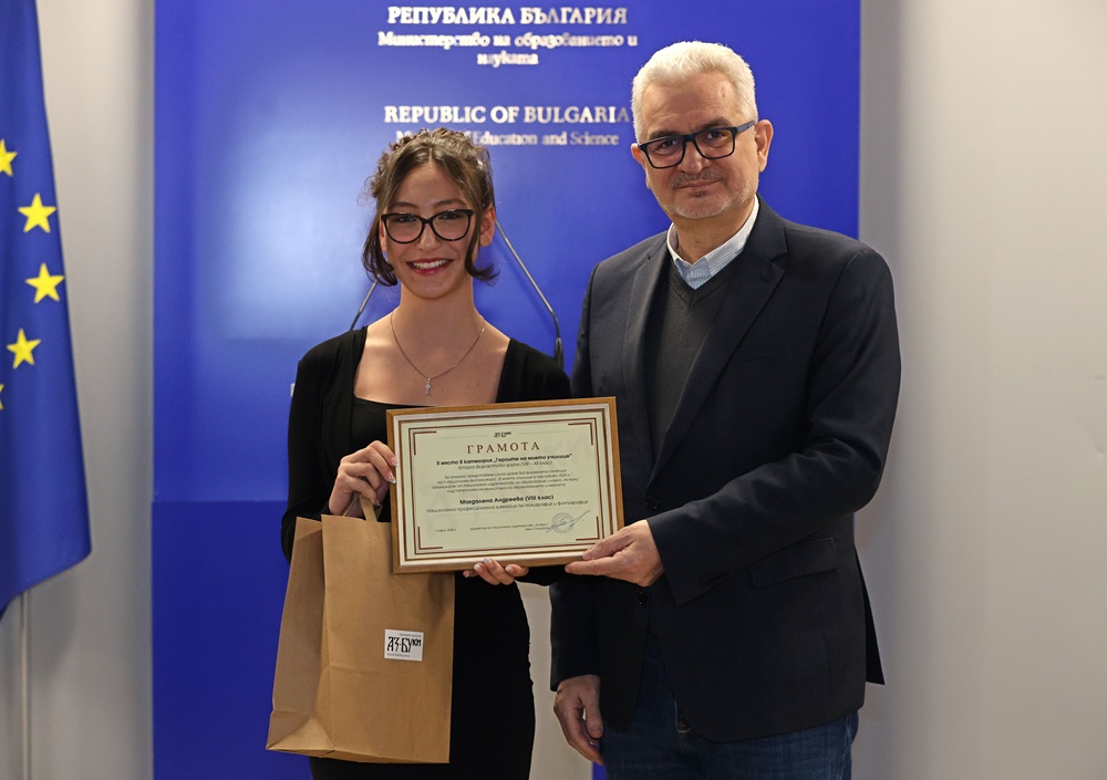 Зам.-министър Лазарова връчи отличията на победителите в трите категории във втора възрастова група (VIII – XII клас) – „Улови мига в училище“, „Героите на моето училище“ и  „Снимка с история“.