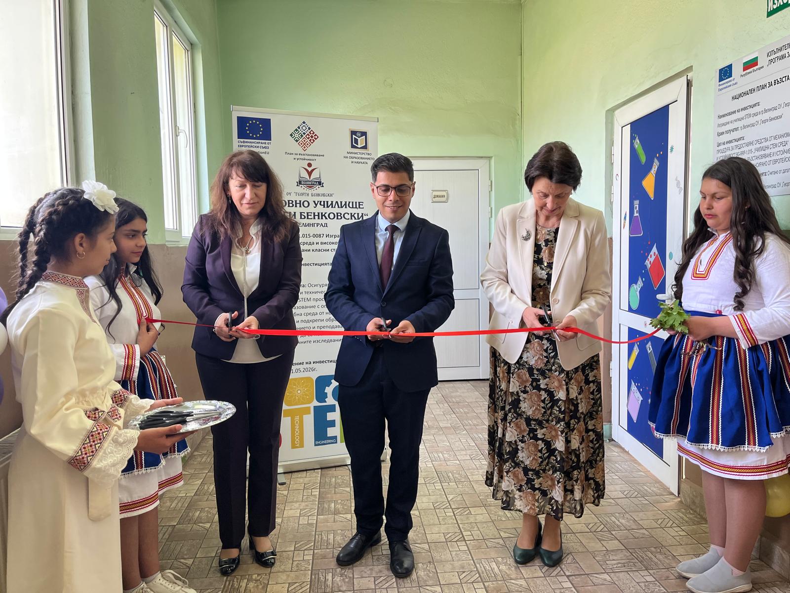 Новият STEM кабинет е изграден с 92 883 евро, отпуснати по Плана за възстановяване и устойчивост. В него децата с любопитство на малки учени правиха експерименти и за радост на учителите си се справяха много добре с технологиите.