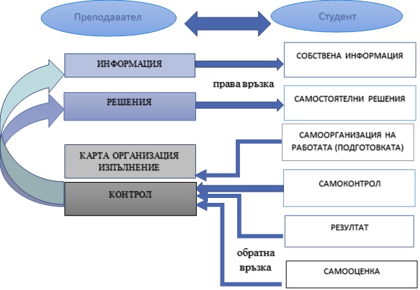 Фигура 3. Инструкционна карта – Комуникация – „преподавател“ – „студент“