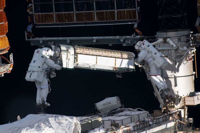 Кайла Барън (34 г.) и Раджа Чари (44 г.) работиха извън МКС около шест часа. Това е втора галактическа разходка за Барън и първа за сътрудника Ӝ Чари. Те инсталираха скоби и подпори за поддръжка на слънчевите панели, които ще бъдат сложени на по-късен етап.