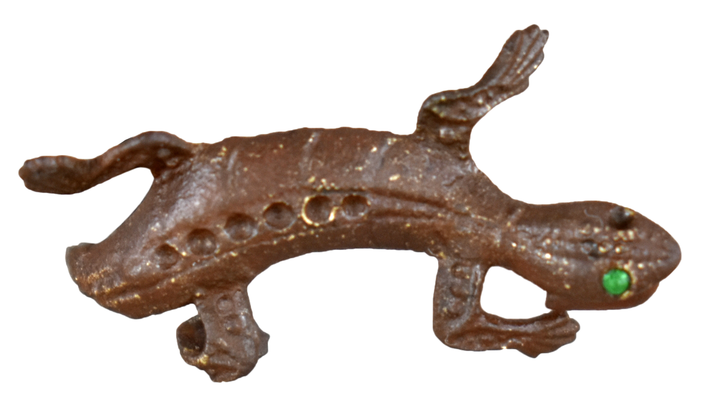 и детайлно изработена фибула във форма на гущер с инкрустирани очи