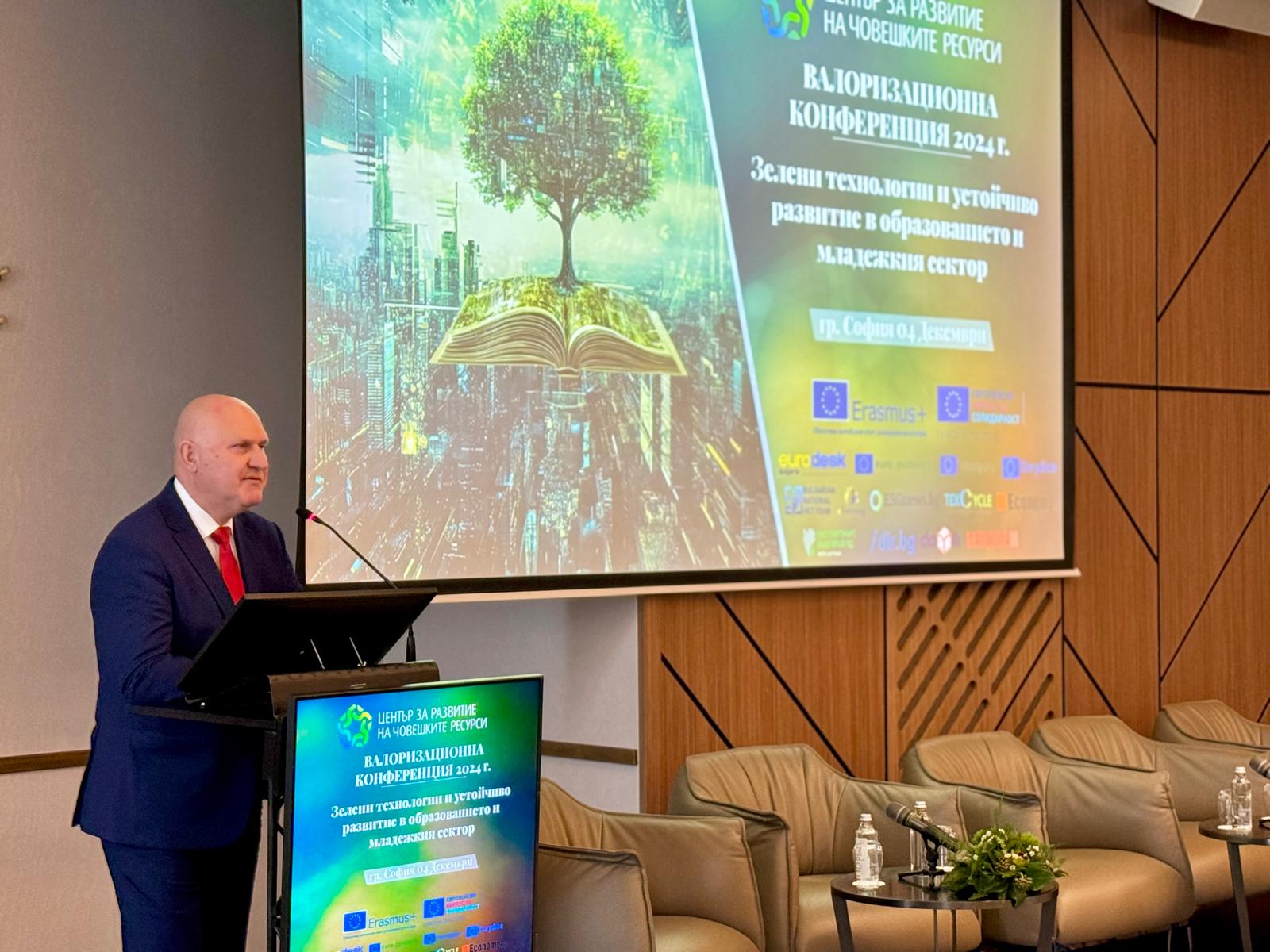 Това съобщи министърът на образованието и науката проф. Галин Цоков по време на годишната конференция на тема „Зелени технологии и устойчиво развитие в образованието и младежкия сектор: Възможности чрез „Еразъм+“ и „Европейски корпус за солидарност“, организирана от Центъра за развитие на човешките ресурси.