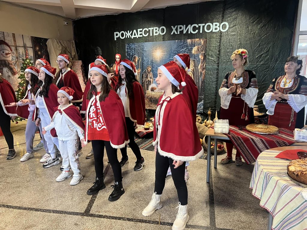 Базарът започна с коледен поздрав към всички ученици и гости от вокална група „Звънче“ с ръководител Слава Соколова.