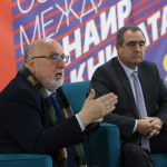 Проф. Милко Палангурски, проф. проф. Иван Русев и Емил Спахийски, директор на Национално издателство „Аз-буки“, на премиерата на „Стопанска история на българите в Османската империя“ (от ляво надясно)