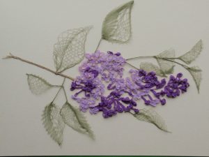 пейзаж „Аквадукт“ на Пол Сезан, изплетен с дантела от Бистра Писанчева Снимка Личен архив