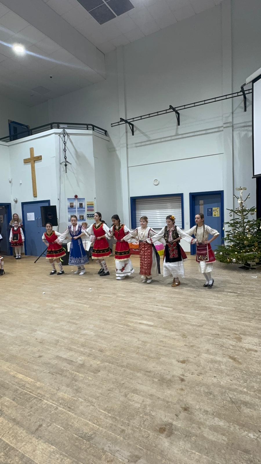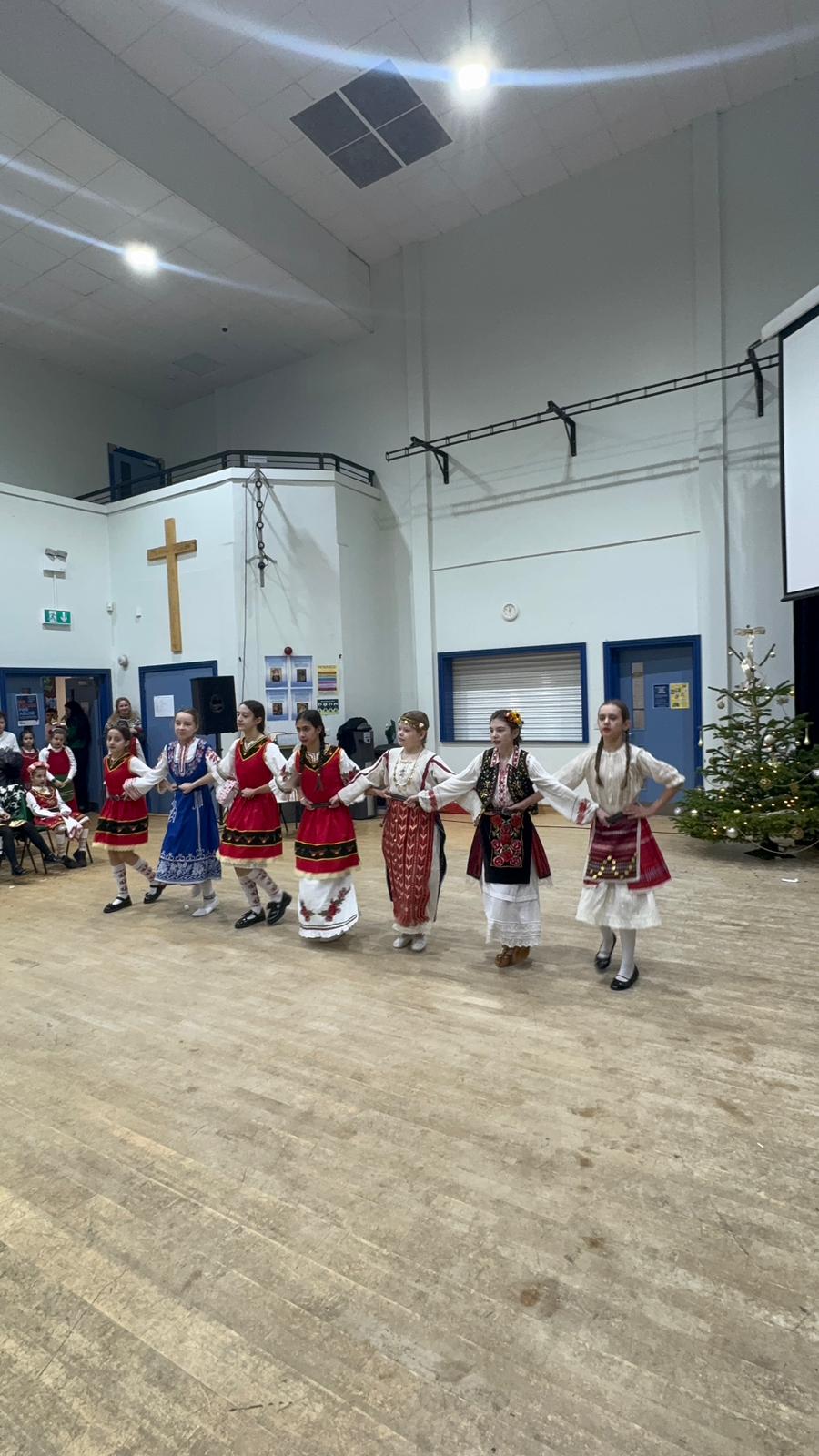 „Концепцията на тържеството беше да покажем как се празнува Коледа в България и в Англия и че въпреки различните традиции ни обединяват обичта към семейството, надеждата и вярата в новото начало. Десет деца в народни носии разказаха за българските обичаи, последвани от коледари, фолклорни танци и представяне на английските традиции. Най-малките ученици доукрасиха елхата с песни и танци, а Дядо Коледа зарадва всички деца с подаръци“, споделя екипът на Българското неделно училище.