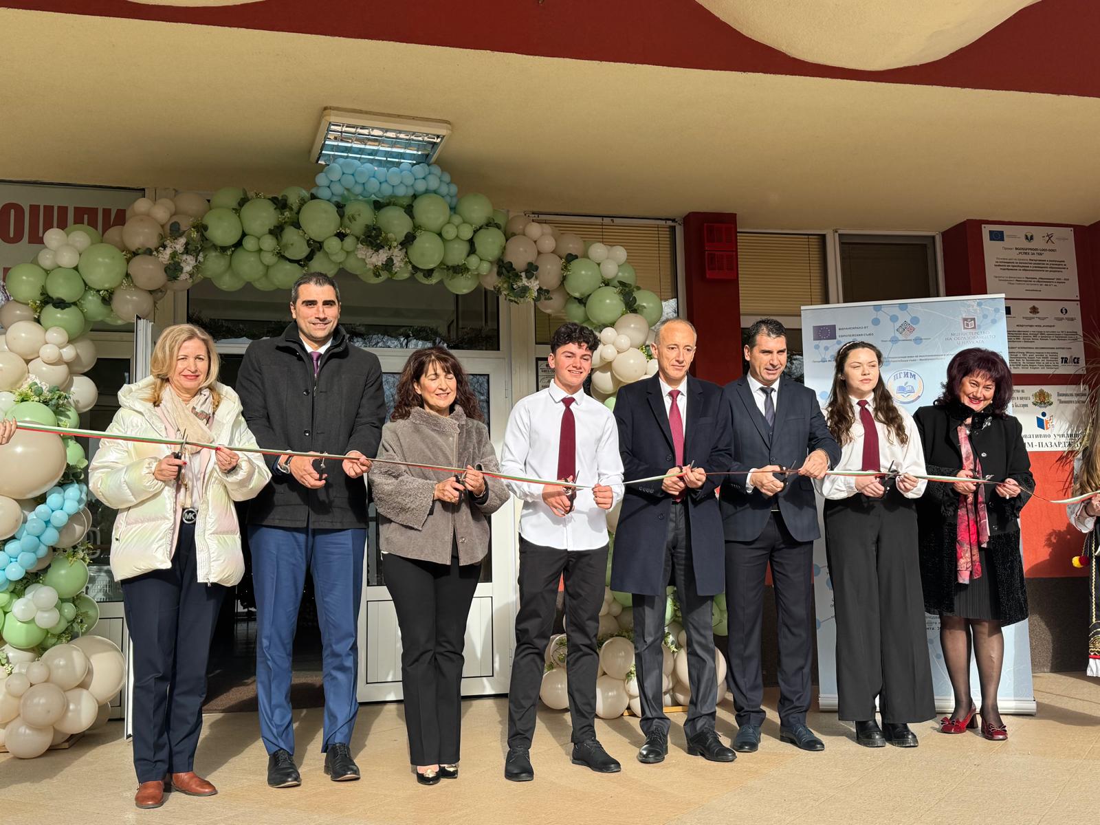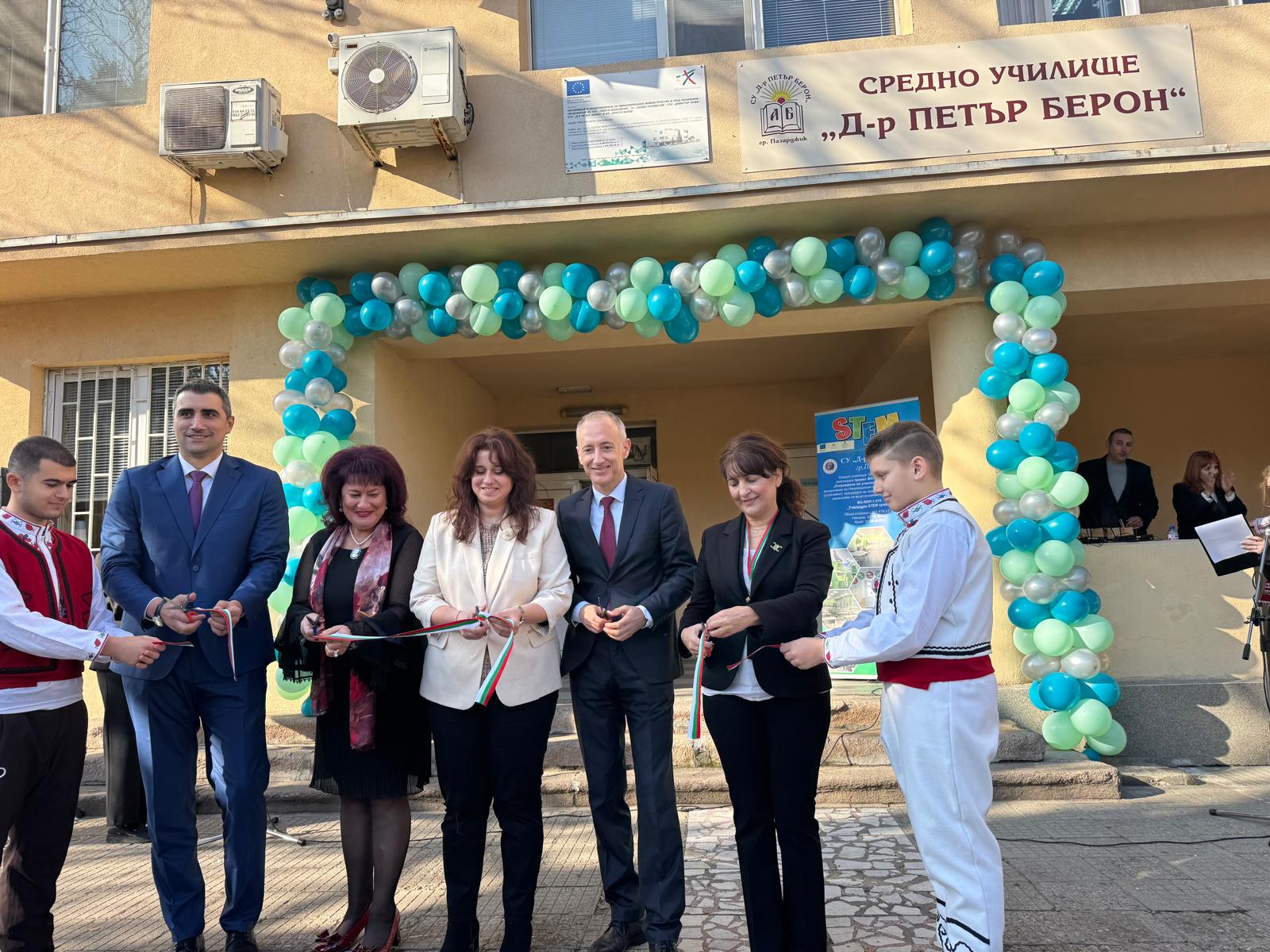 В Средното училище „Д-р Петър Берон“ в Пазарджик също отвори врати нов Център за обучение по математика и природни науки. Министър Красимир Вълчев поздрави екипа на училището за реализираните проекти и изрази надежда, че това ще помогне на учениците да повишават резултатите си.
