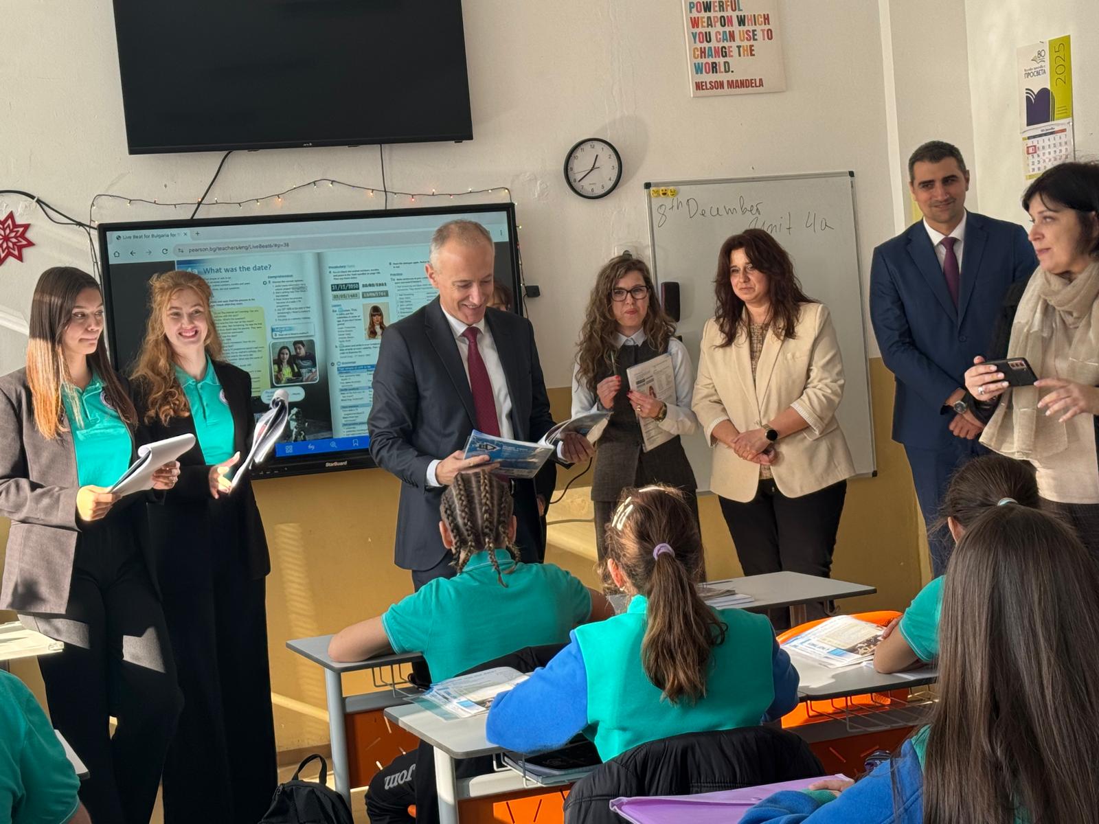 Министър Красимир Вълчев разгледа и обновения кабинет по английски език и спортната площадка,