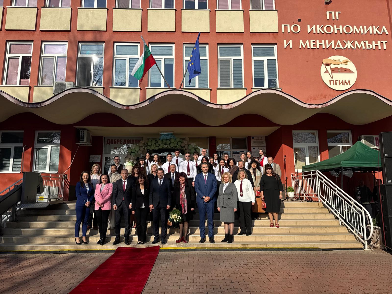 Министър Вълчев поздрави училището, че си партнира с Университета за национално и световно стопанство, и поздрави зам.-ректора проф. д-р Цветана Стоянова за резултатите, които постигат заедно. Директорът на гимназията Ангел Малинов съобщи, че през миналата учебна година над 80% от завършилите са продължили обучението си във висши училища, а 18% са започнали веднага работа по специалността.