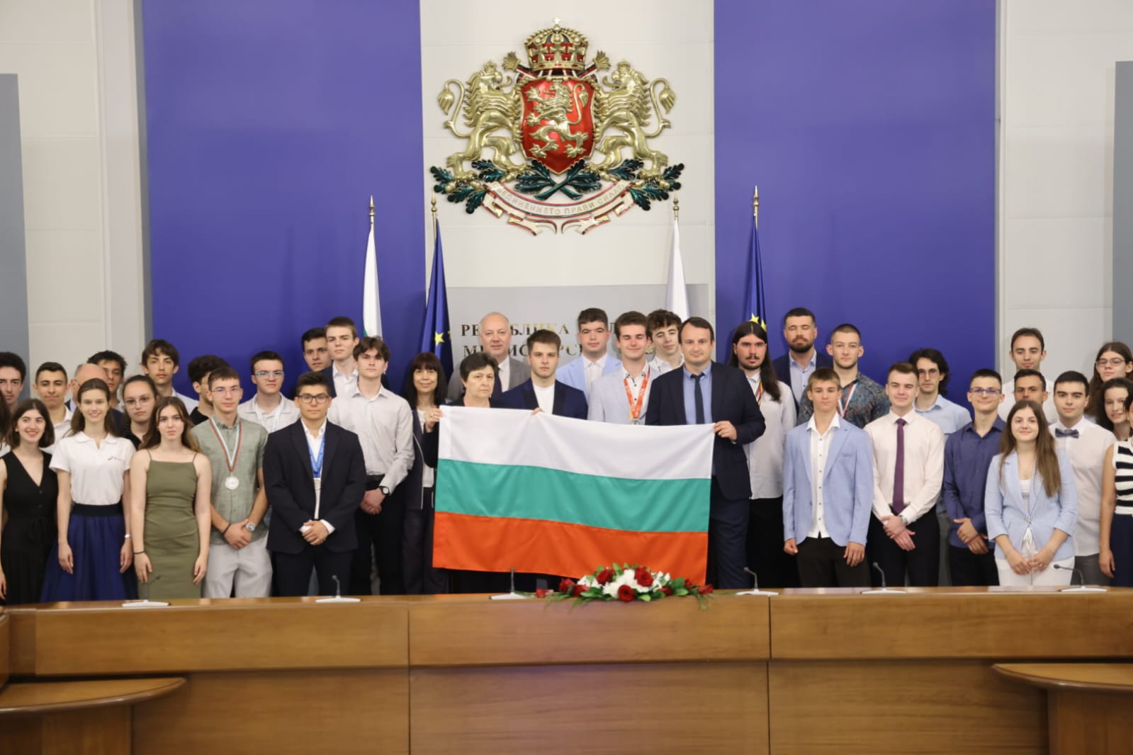 На церемонията в Министерския съвет присъстваха ученици и преподаватели от националните екипи по математика, физика, химия, биология, лингвистика, информатика, астрономия, астрофизика, география и изкуствен интелект.