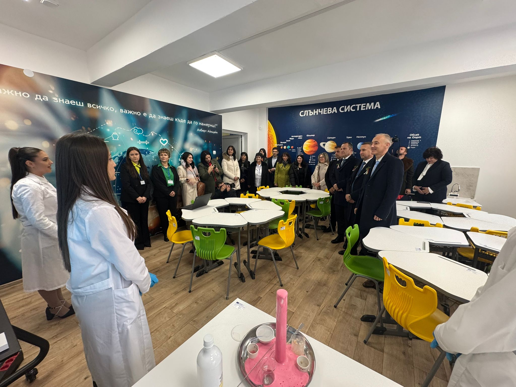 „Убеден съм, че това ще повиши интереса за учене, защото всеки ученик, независимо какво учи, има нужда от познания и разбиране в областта на природните науки. Важно е да се учи с разбиране, да има обучение с практика, което ще формира умения и ще ви направи по-пълноценни във всяка професия“, каза Красимир Вълчев на учениците.