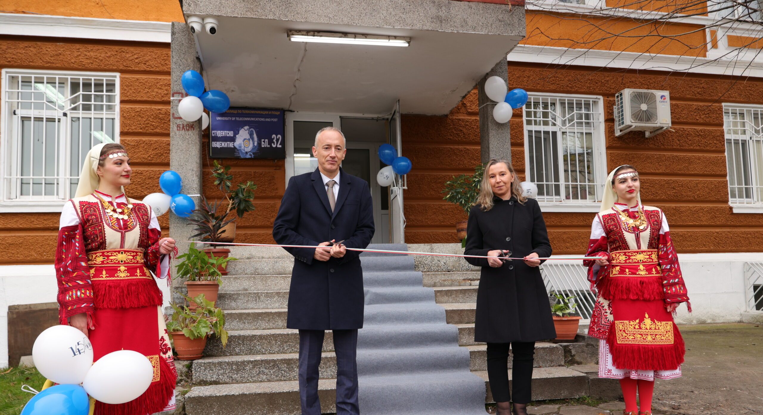 След първата копка министър Вълчев и проф. Темелкова прерязаха лентата и на изцяло ремонтираните общежития в блокове 30 и 32 на ВУТП. Обновяването им е реализирано по Програмата на МОН за саниране, ремонт и обзавеждане на студентските общежития, предоставени за управление на държавните висши училища и „Студентски столове и общежития“ ЕАД 2024 – 2027 г. и е на стойност 7 млн. лева.