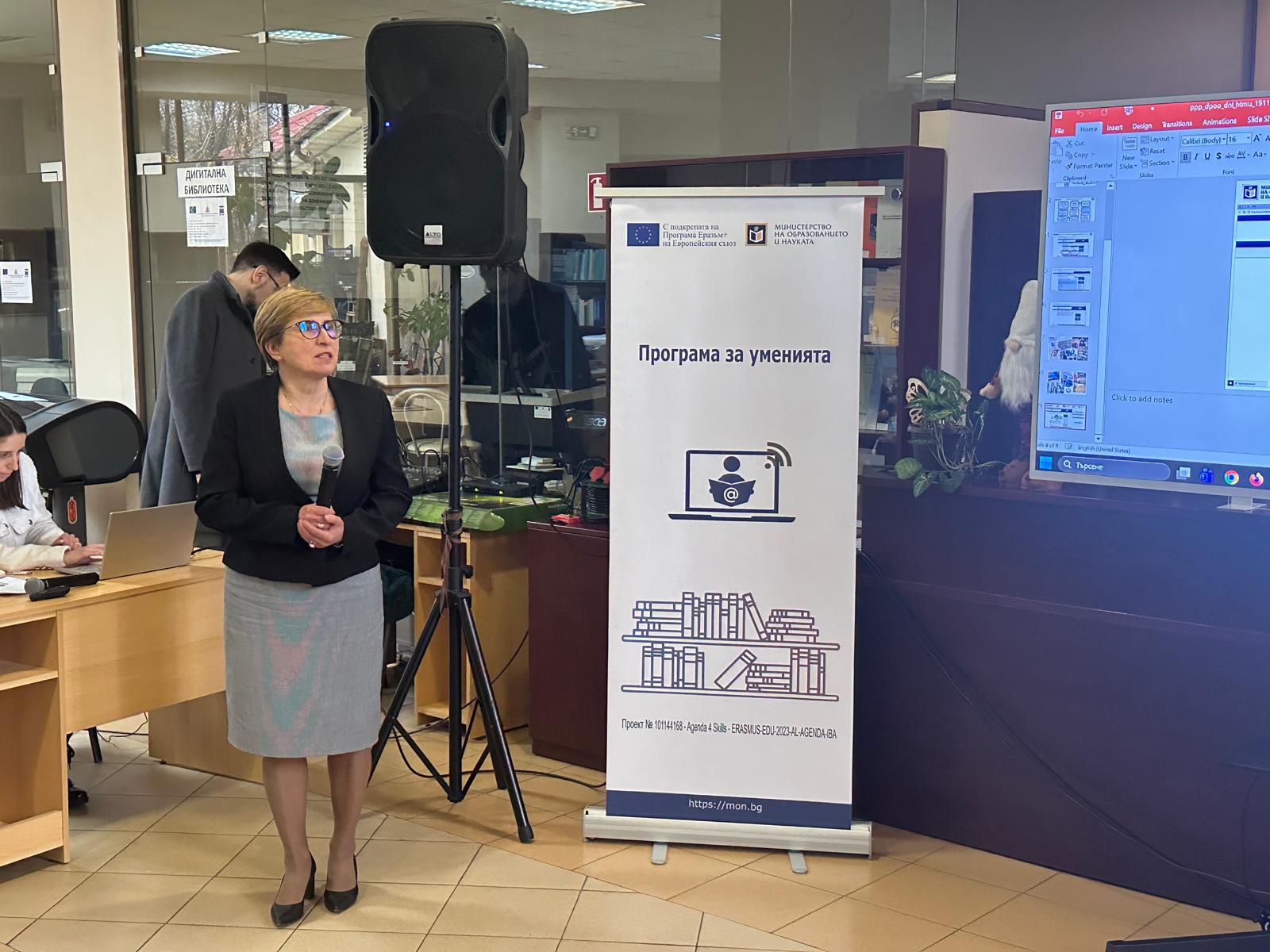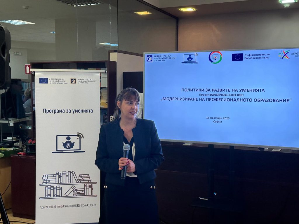 Весела Караянева – главен експерт в МОН, съобщи актуална информация по разработването на учебна документация по новия списък на професиите за професионално образование и обучение, които са за ученици и за възрастни. Тя представи и дейностите по проекта „Модернизация на професионалното образование“ и политиките на МОН в тази област. Те включват и улеснена процедура за валидиране на уменията. Чрез нея се осигурява възможност на хора с професионален опит в определена област, които нямат формално образование и диплома, да получат удостоверение за своите компетентности. Това става, след като се явят на изпит или преминат през кратко обучение.
