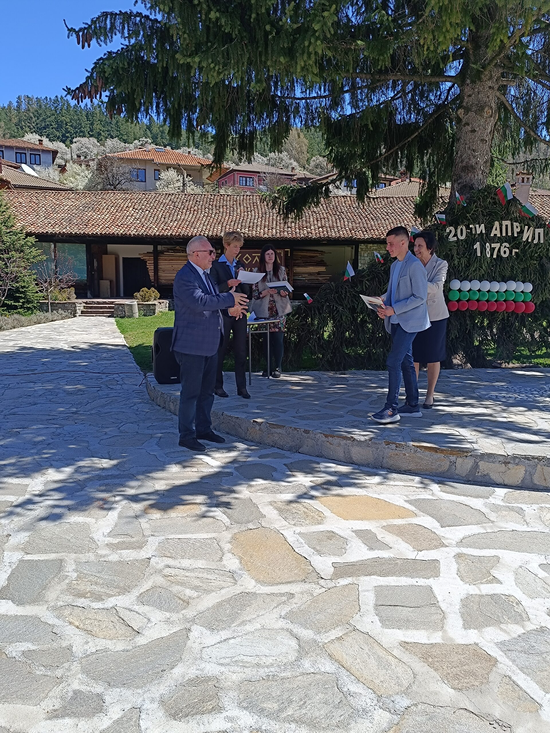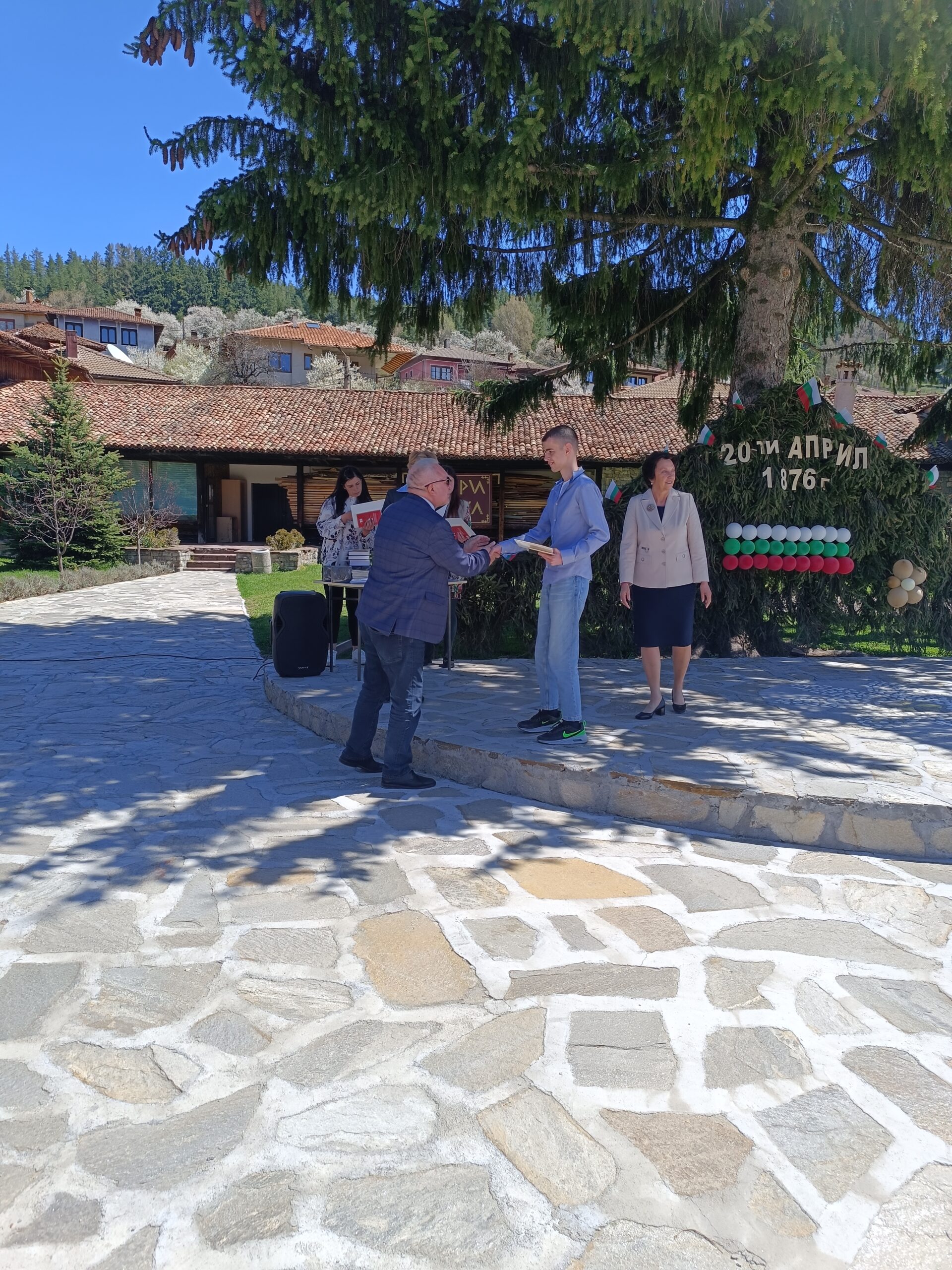 Тържествената церемония по награждаването се провежда в двора на СУ „Любен Каравелов“ – Копривщица, което е домакин на олимпиадата.