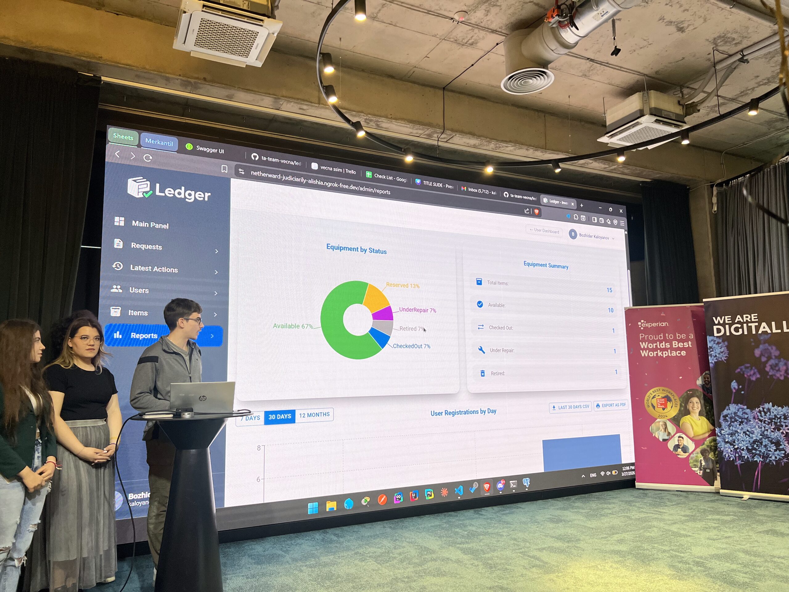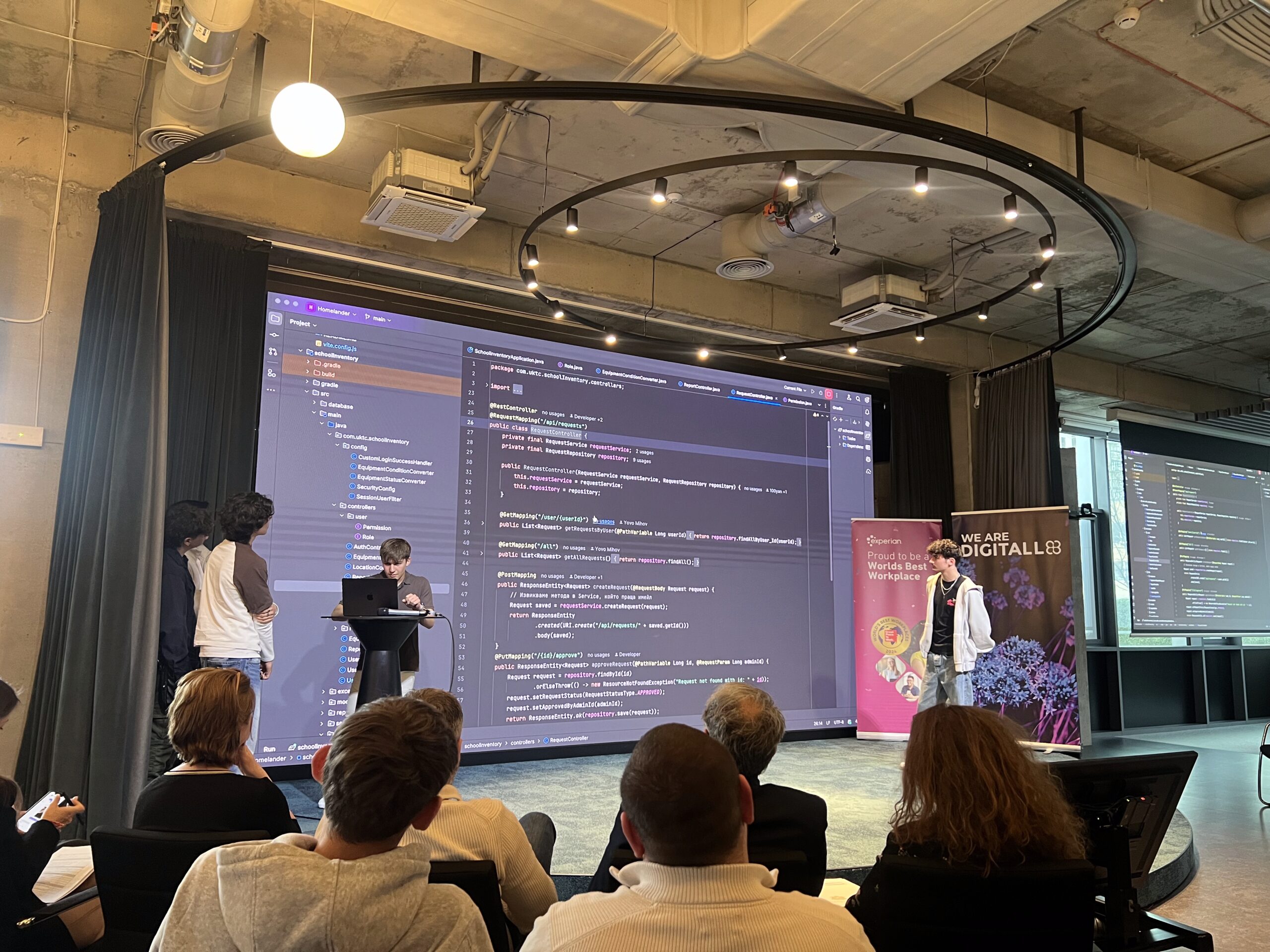 Младите таланти от IX до XII клас имат за задача да разработят система за управление на училищно оборудване с роли на администратор и потребител и функционалности за подаване на заявки, проследяване и управление на наличната техника и инвентар.