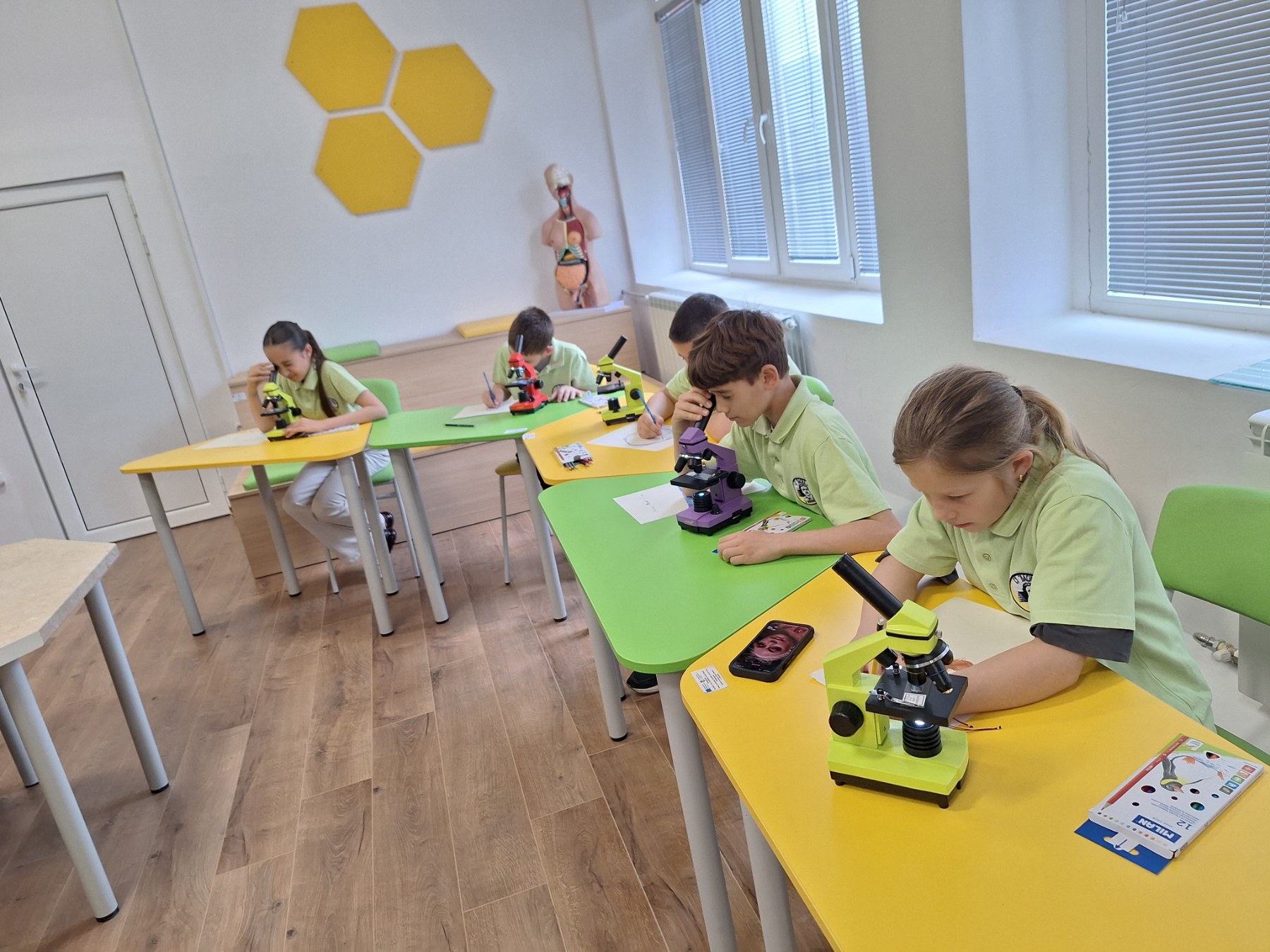 В кабинета по 3D дизайн и роботика учениците създават модели и детайли с 3D принтер, 3D резец и 3D химикалка, сглобяват пневматичен кран, управляват роботи с гласови команди и демонстрират пневматични механизми. В областта на математика и информатика са представени програми в Scratch и Micro:bit, работа с графичен таблет и роботизирани системи.